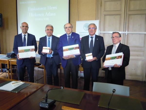 Euskaltzaindia Baionan bildua zen joan den ortziralean bere osoko bilkurarentzat, Herriko Etxeko gela nagusian. Paradaz balia, Euskararen Herri Hizkeren Atlasaren VIII. tomo edo liburukia aurkeztu du, CD bat ere badaukala juntaturik. Aitzineko tomoak bezala, Laboral Kutxak diruz lagundua. "Laboral Kutxaren betiko borondatea izan da gisa horretako ondarearen laguntzea", zioen Xabier Egibar zuzendariak. Lehen aldia da Atlas horren liburuki baten estreinako aurkezpena egiten dela Iparraldean, Andres Urrutia euskaltzainburuak azpimarratua duen bezala. "Ohore handia guretako", Yves Ugalde Baionako axuantak erantzun dioenez. Obra guziez ederra, "4 kiloko ñiñia", Xarles Videgain euskaltzainburu-ordearen hitzetan. 1984an hasirik, inkesta lantsua egin da 145 herritan, horietan 45 Iparraldekoak (Lapurdin 15, Baxenabarren18, Zuberoan 12), 3000ko bat galdera eginik, tokiko hizkeren bila. Zortzigarren liburuki honek laborantza mundua (zerealak, mahastia), sukaldea eta etxeko mantentze tresnak ditu nagusiki jorratzen, 250 mapa edo karta dituela adibideen apaingarri. Ikerlan kolektiboa, Adolfo Arejita euskaltzainak aitzinekoen lan ildoa oroitarazten zaigula, Jean Haritschelhar, Andolin Eguzkitza, Beñat Oiharzabal, geroztikakoak ere horiei juntatuz, Aritz Arbaroa, Gorka Intxaurbe eta Amaia Jauregizar, Xarles Videgainen arduradunaren inguruan ari direnak. Obra baliosa, internetez ere osoki kontsultagarri dena. "Herritik hartzen dugu, herriari itzultzeko" (Andres Urrutia).