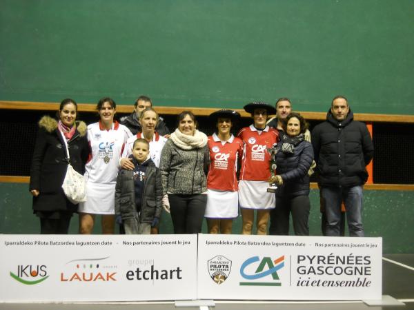 Ukan dugu orotarik neskatxa eta andereen Euskal Herriko pilota lehiaketan. Dena den, gure kimuak zuritan ginituen eta Noizbait gorriz. Eta huna Airetik xapeldun, partida polit bat eskaini daukute lau pilotariek. Airetik 40, Noizbait 25. Gora Haristoy Joana, Errecart Mailen eta Mouraret-Bruzaingaray! Eta ukan dut lehen maileko finalaren ikusteko parada. Eta hor Arbonarrak 40 eta Urruñarrak 24. Xapeldun atera dira beraz Etxeleku Amaia eta Housset Maritxu, lorios ginituen borroka doi bat aise irabazirik. Eta gainera plaza andere eskaintza ardietsi du Amaia Etxelekuk, eta bestaldian berdin galtzaleak izanen dira irabazle.