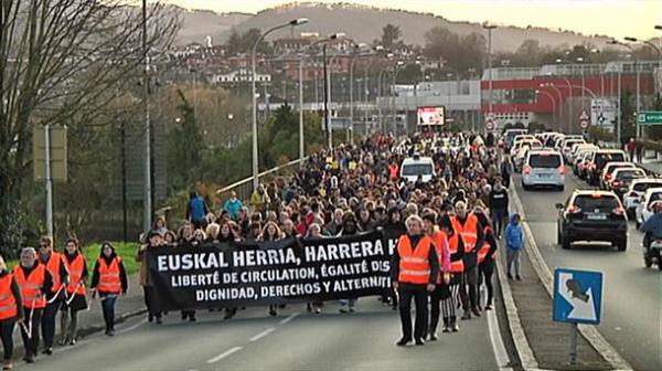 Ehunka pertsonak manifestatu dute migratzaileen eskubideen alde, Hego eta Ipar Euskal Herriaren arteko muga zeharkatuz, Irungo Harrera Sareak deiturik. Harrera duina eta osoa eskatzen dute migratzaileentzat, horietako asko Europarako bidean dira. "Euskal Herria, Harrera herria. Liberté de circulation, égalité des droits. Dignidad, derechos y alternativas". Mugitzeko askatasuna, eskubideen berdintasuna, duintasuna, eskubideak eta aukerak lelopean, migratzaileen mugitzeko eta ibiltzeko askatasuna aldarrikatu dute. Frantziako estatuak Espainiara bidaltzen ditu berriz muga zeharkatzen entseatzen diren asko.