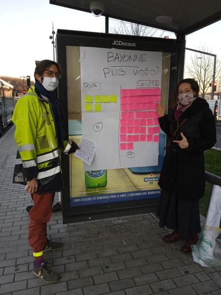 "Stop Pub" kolektiboa, borrokatzen dena hirietako publizitateak desagertuak izan daitezen, joan den astean karrikan pasatzen ziren jendeak galdekatu ditu, publizitate pano horieri buruz beren iritzia eman dezaten. Diotenaz gehiengo handia kontra litatzeke.