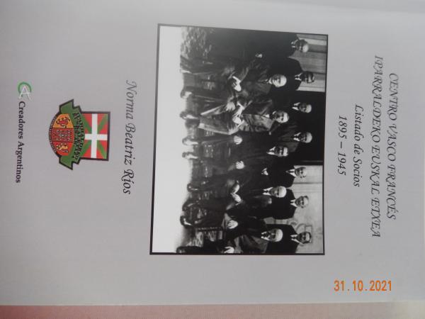 Buenos Aires-en dagon Iparraldeko Euskal Etxe edo Centro Vasco Frances-eko idazkaria den Norma RIOS-ek agertu duen liburua dugu hemen aipagai. Moreno karrikan dagoen Euskal Etxea 1895ean eraiki zuten eta obra honetan 1895etik eta 1945 arte kide izan diren guziak urtez urte sailkatu ditu.