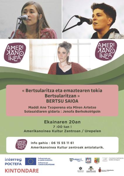 Ekainaren 20an, ortziralez, Urepele Amerikanoinean solasaldi eta bertsu saioa proposatua da. Gaia bertsularitza eta emaztearen tokia bertsularitzan izanen da.Solasaldiaren gidari Jenofa Berhocoirigoin izanen da eta bertsu saioan Maddi Ane Txoperena eta Miren Artetxe arizango dira. Hitzordua 19:00tan emana da. Ongi etorri deneri!