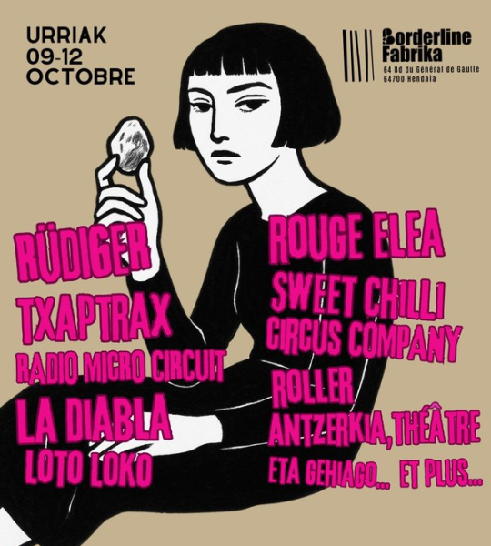 Urriaren 3an Borderline Fabrikaren gogoeta fasearen aurkezpena eta bilera publikoa eginen da, pintxo pote batekin batera. Denak gomitatuak dira gogoetak partekatzera. Dena den,7. harria festibalaprestatzen ari dira. Urriak 9 eta 12 artean izanen da aurtengo edizioa. Egitarauan besteak beste kontzertuak eta antzerkia izanen dira. Xehetasunak: borderlinefabrika.weebly.com.