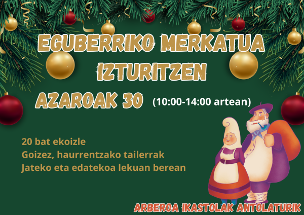 Arberoa ikastolak urte guziz antolatzen duena aurten Izturitzeko herriko gelan iraganen da, azaroaren 30ean, igandez (10:00-14:00). 20 bat mahainetan: jantzi, jostagailu, apaingailu, edergailu, goxoki, janari, edari eta eskulan eder anitz ere salgai izanen dira.