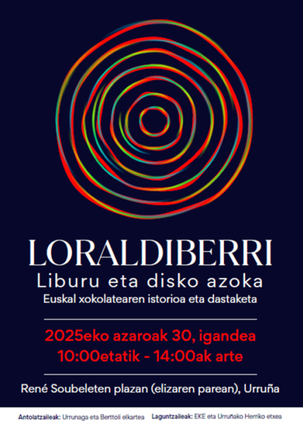 Hilaren 30ean, igandez, Loraldiberri Liburu eta Disko Azokaren 4. edizioa eginen dute R. Soubelet plazan, elizaren aitzinean (10:00-14:00). Euria balitz, Posta ganbera handian. Antolatzaileak: Urrunaga eta Berttoli elkarteak. Hamalau argitaletxe eta ekoizlek hartuko dute parte: Elkar, Maiatz, Zortziko, Lapurdi 1609, Dakit, Maita Kultura, Biarte, Gatuzain, Ipar Euskal Herriko Hitza, Urrunaga… Urruñako Maita Kultura ekoizleak Jurgi Ekiza, Odei, Fusible eta Ztah-ren azken ekoizpenak aurkeztuko ditu. Aukera ederra Olentzero eguneko opariak erosteko. Egitaraua: idekitzea eta ongietorria (10:00), Herriko Etxeko kontseilu gelan (10:30), Firulete antzerki konpainiaren "Basoa" txotxongilo ikusgarria, “Oskolaren azpian” izeneko ipuina haurrentzat (11:30), Posta gelan, kontalaria: Maddi Zubeldia. Rafa Gorrotxagi xokolate-egilearen azalpenak eta xokolate dastatzea (11:00). Koro Irazoki historialariaren hitzaldia (12:00). Gaia: Sorgin ehiza Nafarroa Garaian eta Lapurdin. Urruñako Antzerki Eskolaren errezitaldia (17:00), Palestinari eskainia, Itsas Mendi zinetokian eta bukatzeko (17:30), “Miñan” antzerkia Itsas Mendi zinetokian, Artedrama taldeak emanik. Dena euskaraz eta urririk.